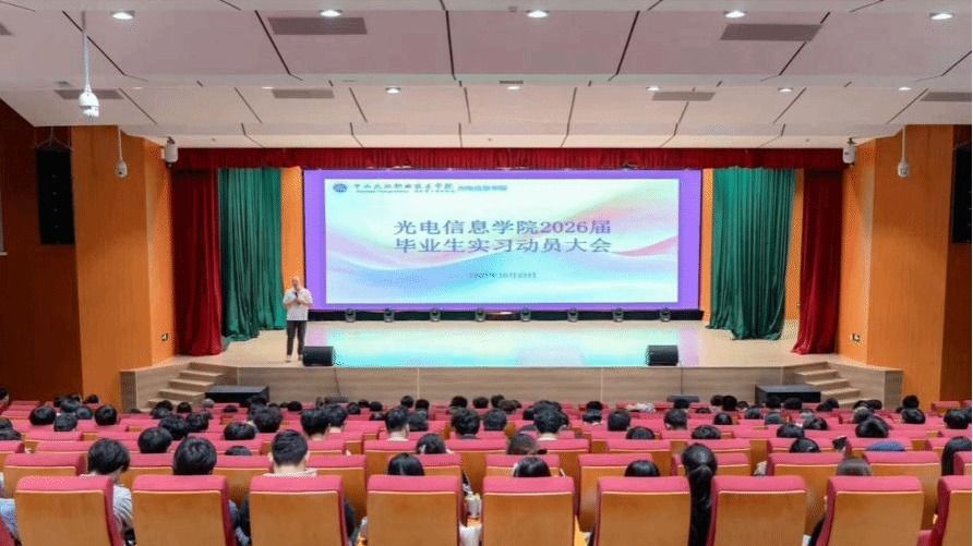 032025.11近日,光电信息学院在音乐厅召开2026届毕业生实习动员大会。学院党总支书记、院长王龙主持会议并讲话,党总支副书记黄晓霞、副院长赖伟东,以及2026届全体辅导员、教研室主任、班主任以及全体毕业生参加会议。会上,王龙结合当前行业动态与就业市场趋势,为同学们细致分析了光电信息领域的就业形势和…
