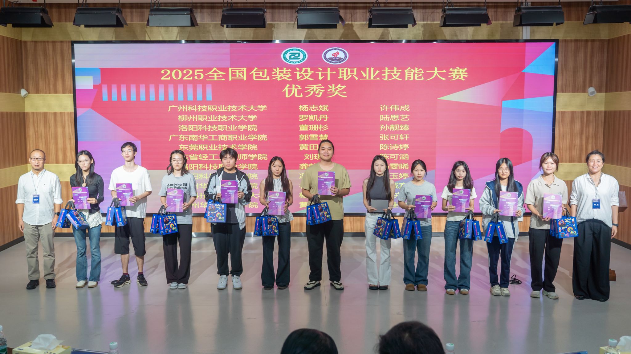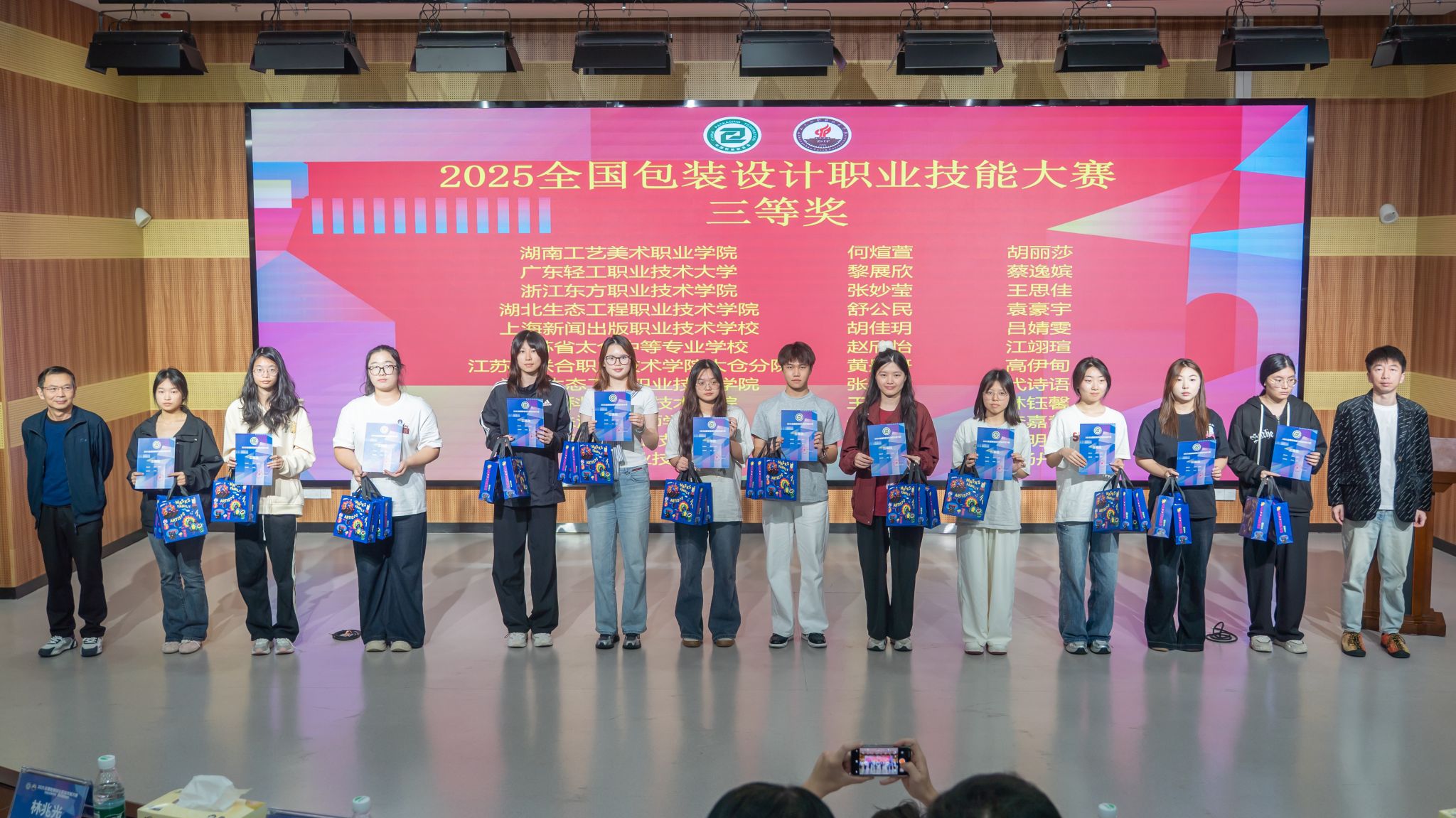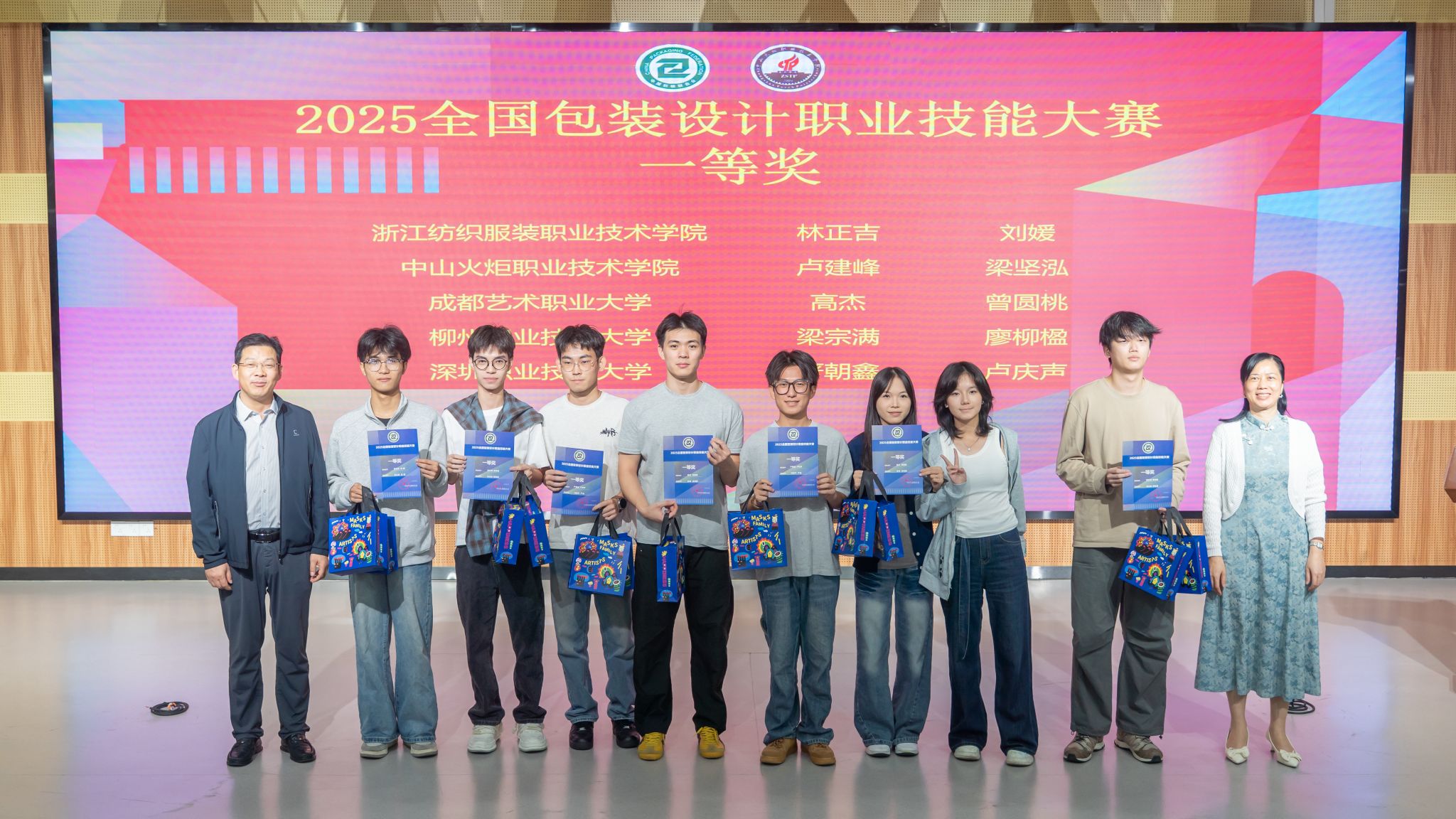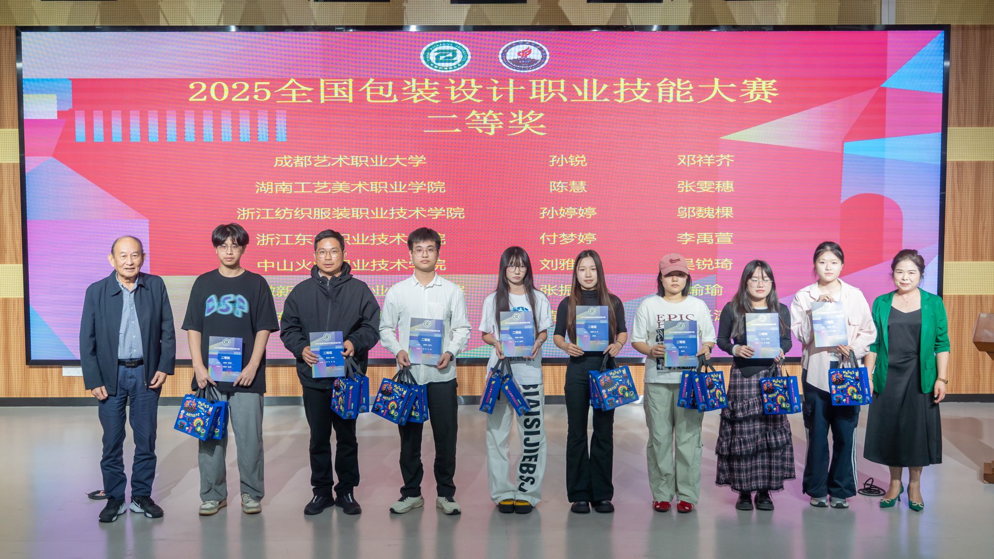 11月10日上午,为期三天的2025全国包装设计职业技能大赛在我校圆满落下帷幕。本次大赛汇聚了来自全国多所职业院校的优秀学子,通过激烈角逐,来自浙江纺织服装职业技术学院、中山火炬职业技术学院、成都艺术职业大学、柳州职业技术大学、深圳职业技术大学的5支队伍荣获一等奖。