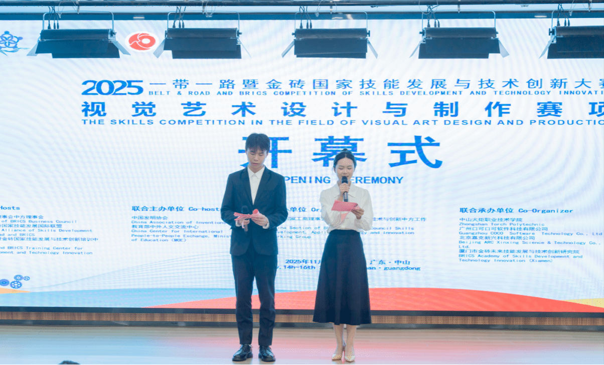 11月14日至16日,由金砖国家工商理事会中方理事会牵头主办、中山火炬职业技术学院联合承办的2025“一带一路”暨金砖国家技能发展与技术创新大赛“视觉艺术设计与制作赛项”(高职组)决赛在我校顺利举行。来自全国各地的146支参赛队伍齐聚中山,以创意为笔、以技能为墨,在视觉艺术的舞台上展开激烈角逐,最终圆满完成各项赛程。