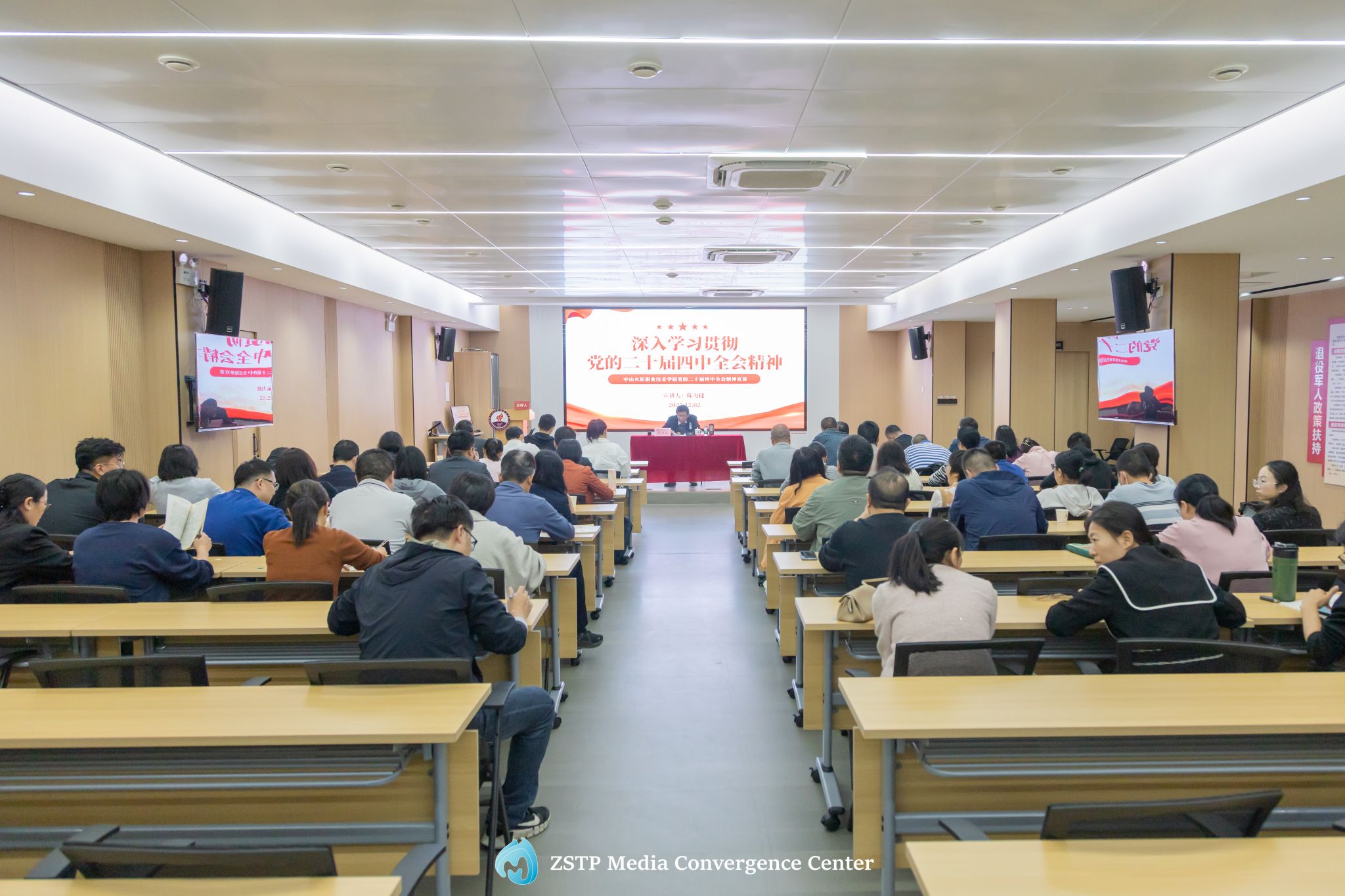 12月2日下午,校学习贯彻党的二十届四中全会精神宣讲团副团长、党委副书记、校长陈力捷在实训校区思学堂一楼会议室以“深入学习贯彻党的二十届四中全会精神 奋力开创学校高质量发展新局面”为题,为包装设计学院全体教职工、机关第二党支部全体党员讲授专题党课。