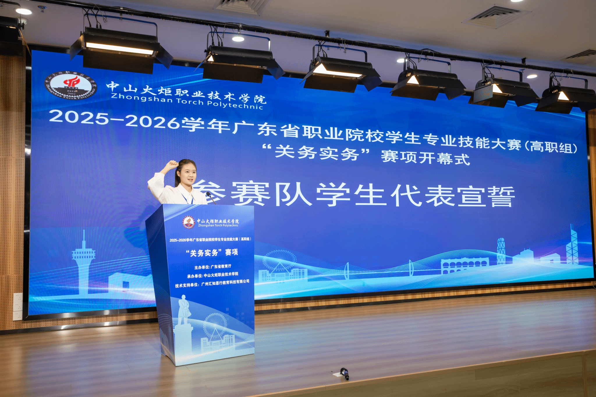 近日,由广东省教育厅主办、中山火炬职业技术学院承办的2025—2026年度广东省职业院校技能大赛(高职组)“关务实务”赛项在我校顺利举行。来自全省51所高职院校代表队的190名参赛选手同场竞技,展开了一场专业素养与实操技能的双重比拼。
