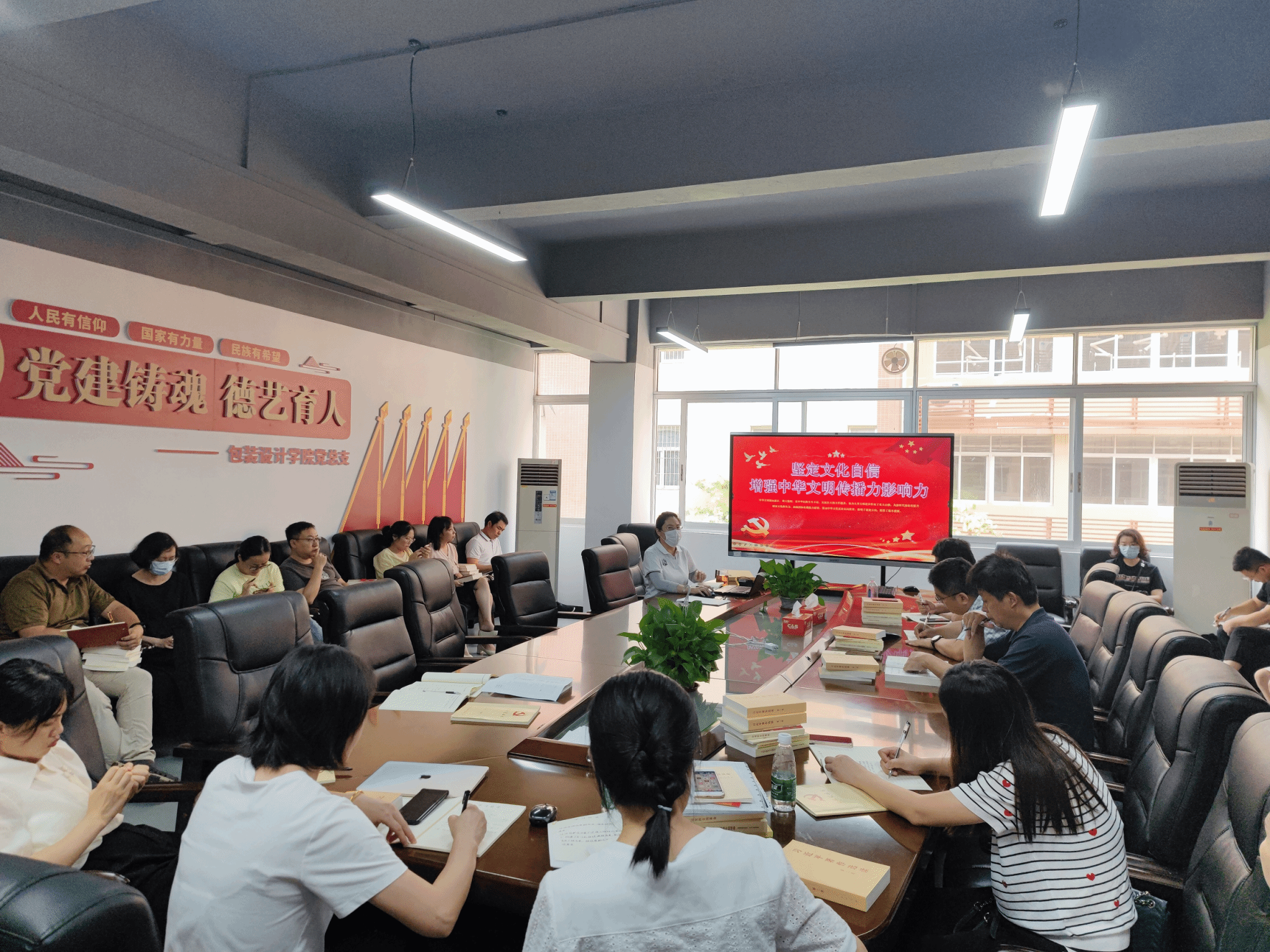 为深入贯彻落实党的二十大精神,增强全体教职工文化自信和历史自觉,夯实优秀传统文化根基,不断推动中华优秀传统文化向创造性转化、创新性发展,6月20日下午,包装设计学院党总支在实训校区B栋413会议室开展主题党日活动,学院党总支代理书记、副院长高艳飞主持会议,学院全体教职工参会。