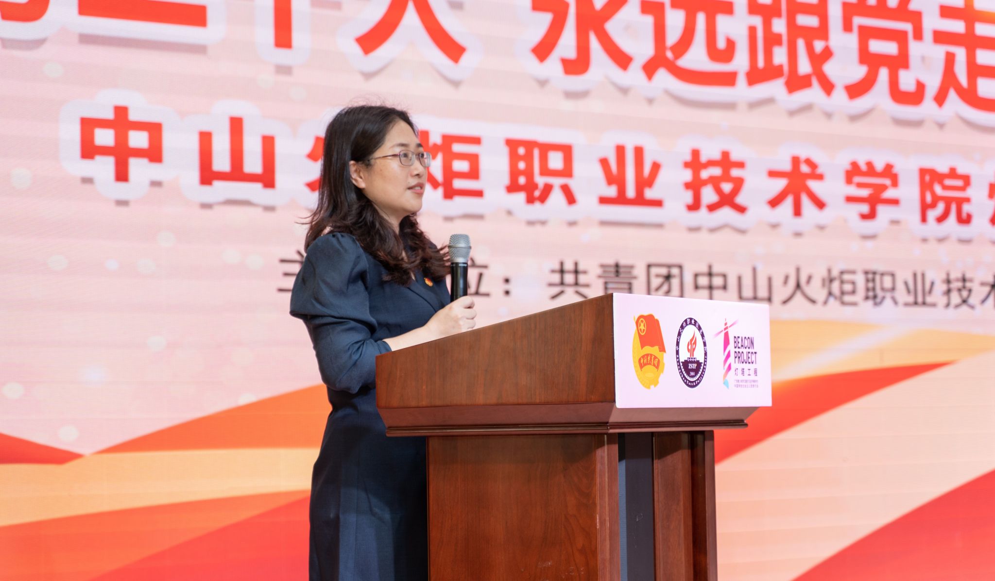 广东省优秀共青团员何诗彤,从“种梦 追梦 圆梦”这个主线,通过其个人丰富的经历和师生分享了她与公益事业感人的故事。她表示,公益事业是她心中的一道光也是梦想的种子,她会勇敢追逐这道光奔向更明亮的远方