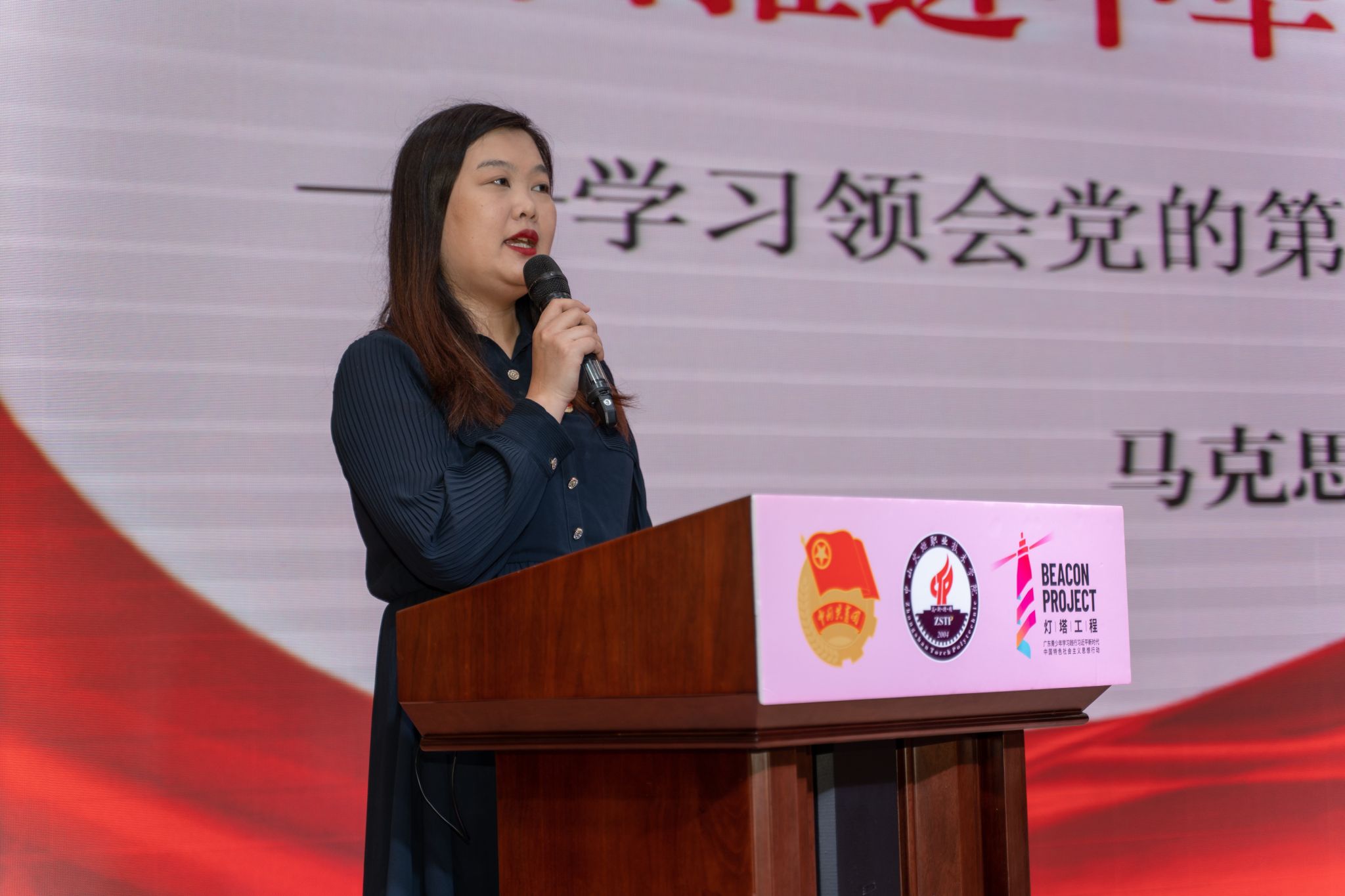 【装备智造学院党总支副书记陈金玲为“青年大学习”获奖个人颁奖】