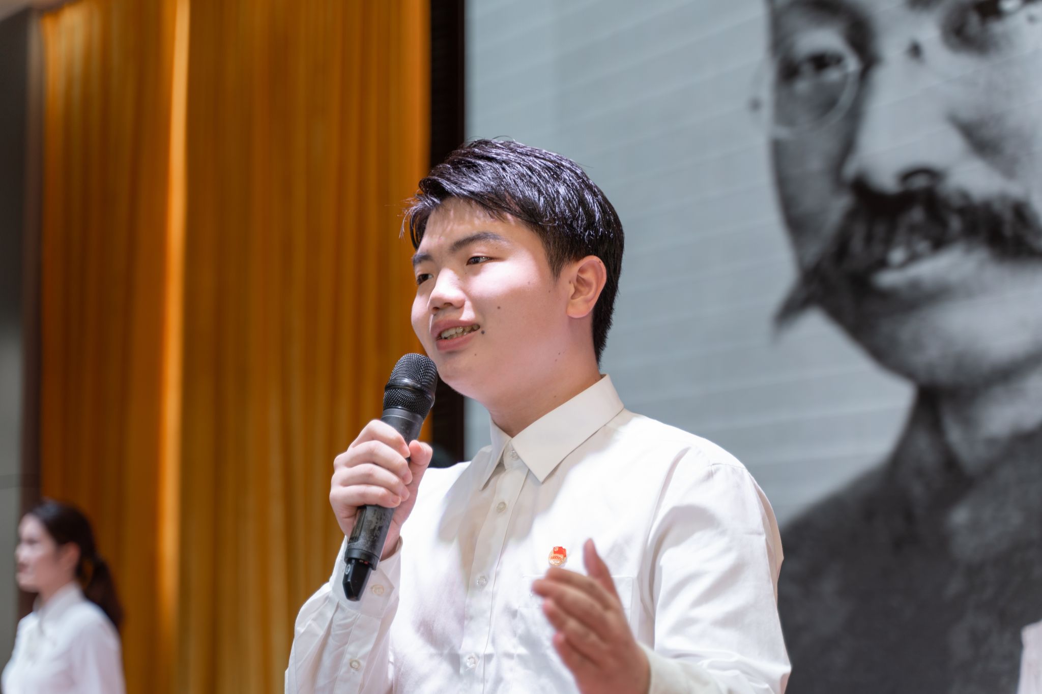 侯贵銓同学在宣讲中讲述了一段长征路上关于“草鞋”的感人故事。