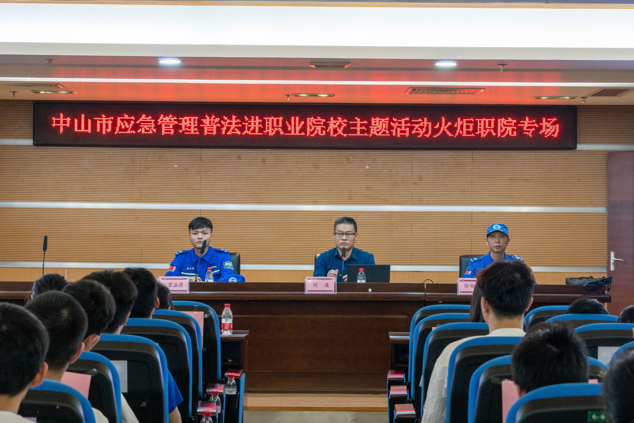 近日,学校在立德楼405室开展应急管理普法进职业院校主题讲座。本次讲座由学生工作部负责承办,邀请了中山市司法局讲师刘通、蓝天救援队专业人员徐柏坚和曾益德主讲,全校共有近130名学生代表聆听了讲座。讲座由学生工作部李蠲老师主持。