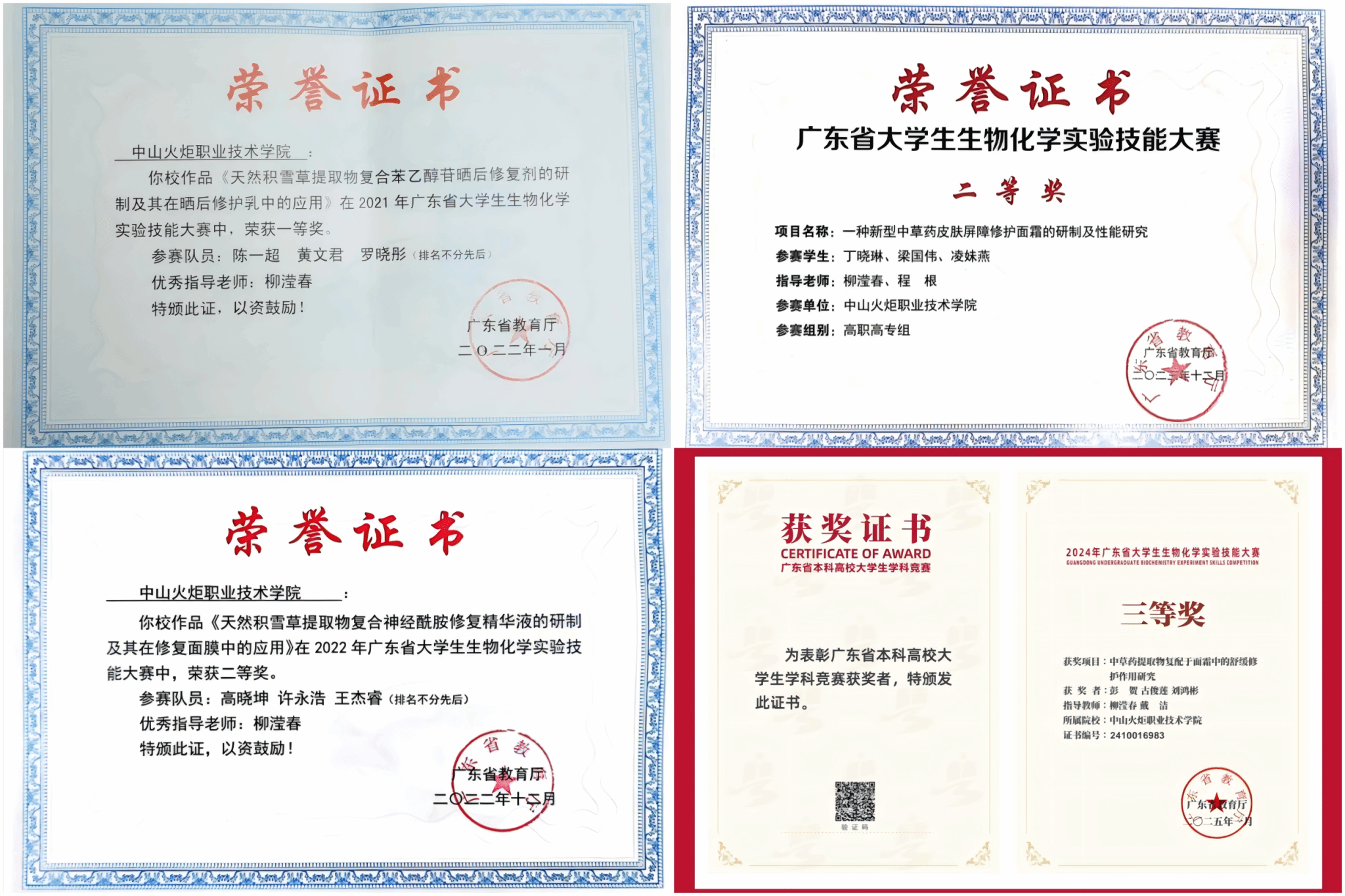 【2021—2024年广东省大学生生物化学实验技能大赛所获奖项】