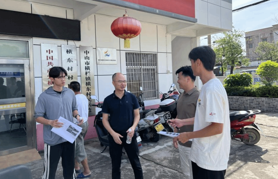 【贾昊楠(右一)到横栏镇开展围墙提升交叉指导工作】