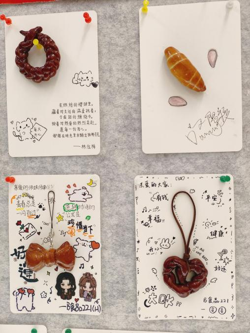 展览现场,有同学以天然食材调色,用烘焙刀工雕花;还有学生将传统碱水面包融入国风纹样,展现出中华优秀传统文化的现代魅力。