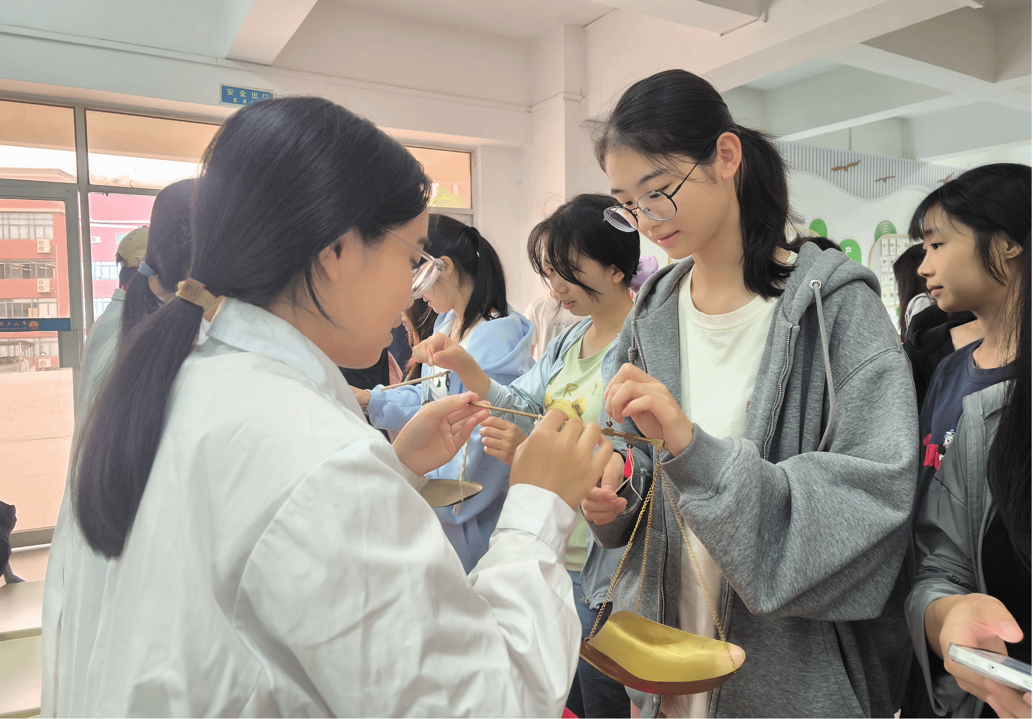活动现场,戥杆轻摇,药香袅袅。同学们表现出浓厚兴趣,在药品教研室老师与学生志愿者的细致讲解与指导下,学习使用这一古老而精密的称量工具,感受中药配制中“分量精准、一丝不苟”的严谨精神。活动现场还展示了由药品教研室主任陈汀波博士带领学生团队用艾草、薄荷、丁香等多味天然中药材制作而成的中药驱蚊水,让同学们感受中药绿色环保驱蚊的效果。