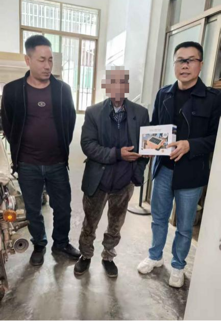 【凤凰镇乡村振兴帮扶工作队成员把便携式太阳能灯送到孤寡老人家中】