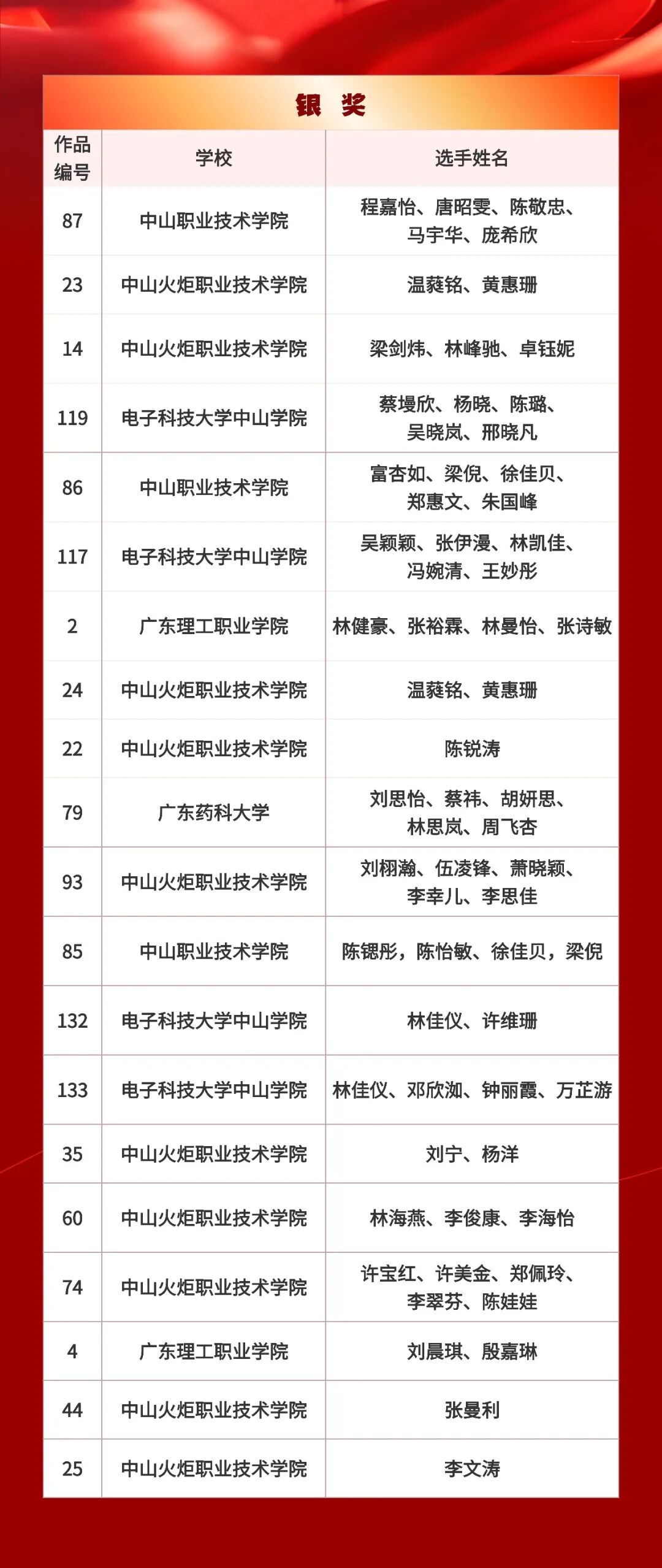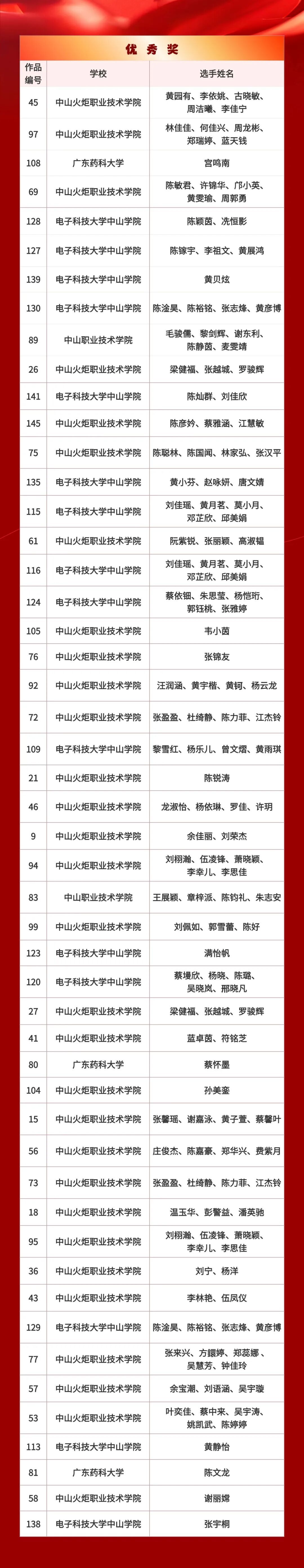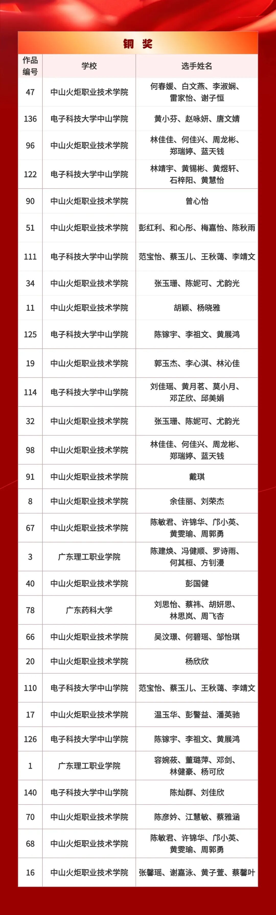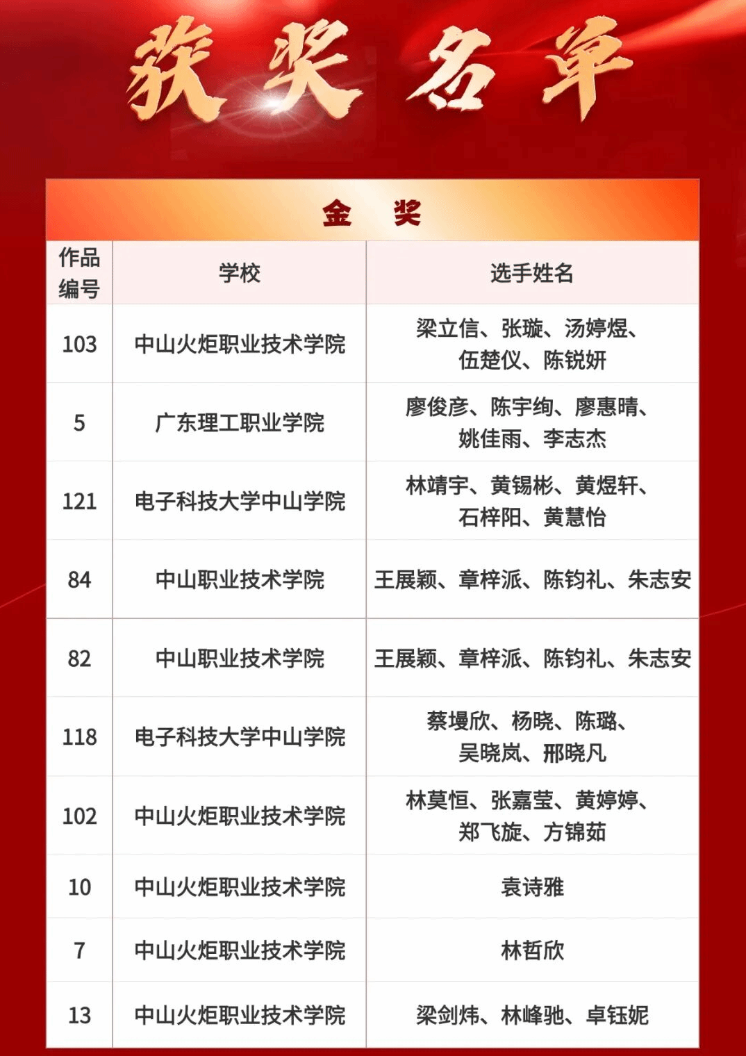 颁奖仪式将于2025年12月23日在中山火炬职业技术学院举行,欢迎获奖选手们到场领奖,工作人员将与各位获奖选手进行对接沟通,共同期待他们的荣誉时刻!