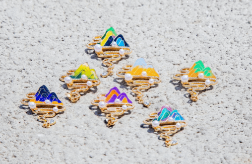 我校获奖作品《丝韵江山・珐琅焕彩集》以“非遗”赋活经典,国际视角焕新”为核心创作理念,一组胸针共同聚焦中华传世名画《千里江山图》。创作者在初学掐丝珐琅技艺的同时在色彩运用上大胆创新——来自非洲的留学生DJAMAL以青绿撞亮橙,ABAKAR则以碧蓝撞明黄,赋予传统工艺鲜明的个性表达与当代审美。多枚胸针既可独立佩戴,展现单件作品的精巧美感;亦可组合拼合,形成“局部鲜活、整体呼应”的视觉效果,以多角度解构的方式实现了对经典的全新诠释。
