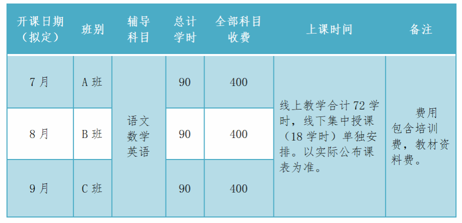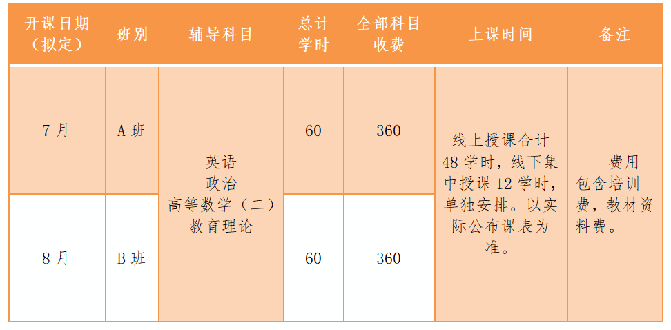 考前辅导班开设班别及相关安排: