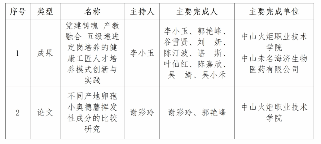 根据《关于开展第七届中国石油和化工教育教学成果认定工作的通知》(中化教协发〔2024〕15号)精神,学校健康产业学院组织对接中国化工教育协会,积极组织相关专业教师开展申报,共遴选2项成果拟推荐到中国化工教育协会参与评审(具体名单见下表)。现予公示,公示时间为2024年6月20日至2024年6月24日。