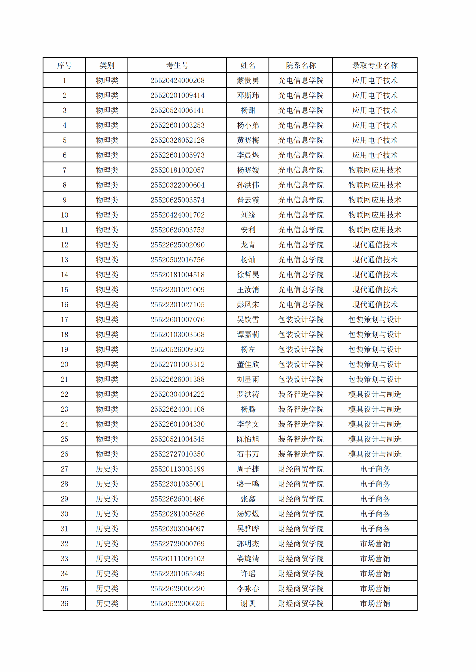 中山火炬职业技术学院2025年贵州省夏季高考录取名单