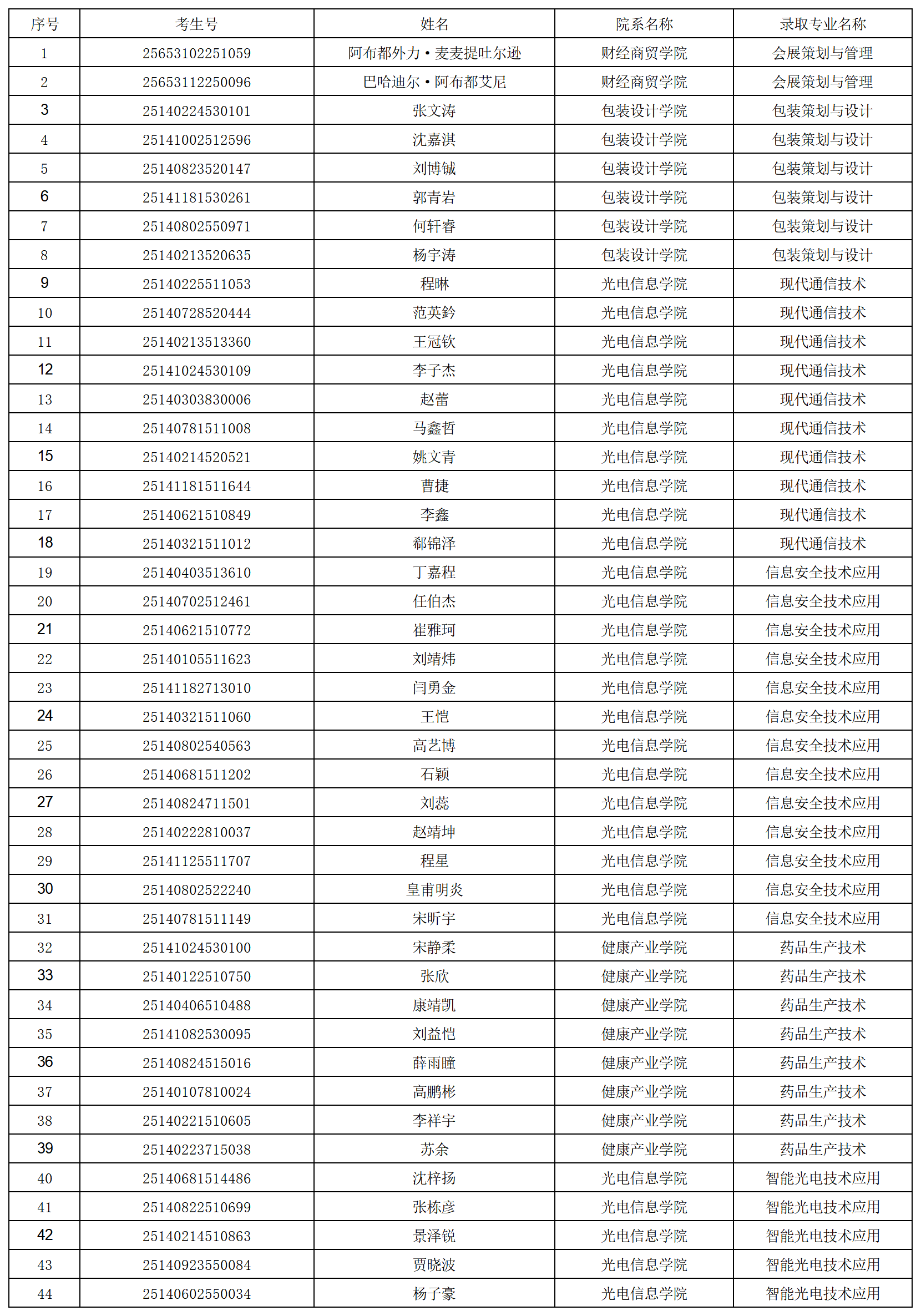 中山火炬职业技术学院2025年山西省、新疆维吾尔族自治区夏季高考录取名单