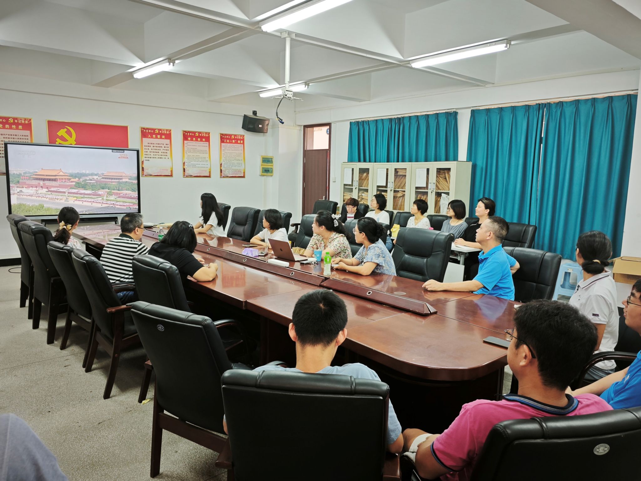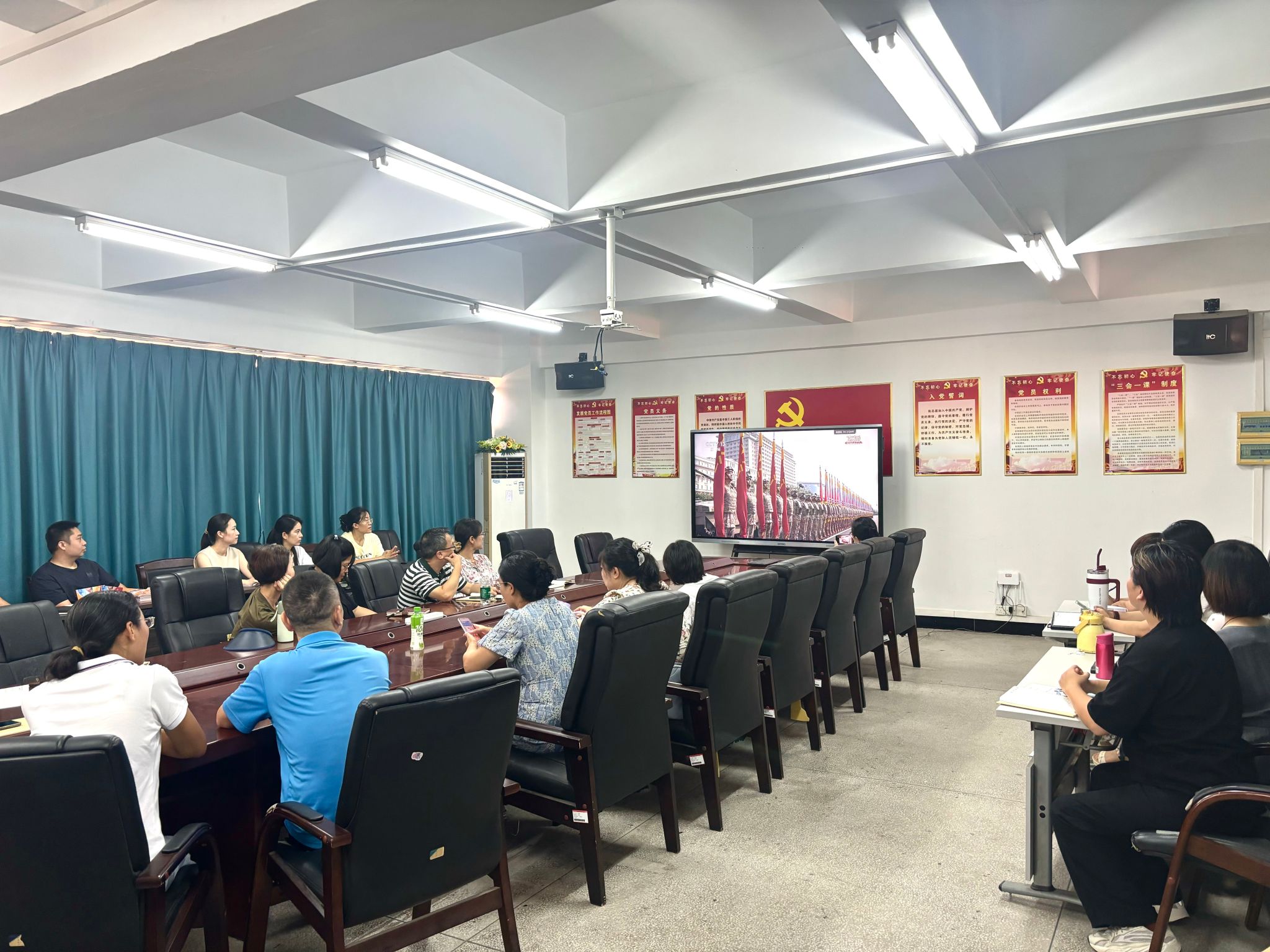 9月3日上午,纪念中国人民抗日战争暨世界反法西斯战争胜利80周年大会在北京天安门广场隆重举行,中共中央总书记、国家主席、中央军委主席习近平发表重要讲话并检阅受阅部队。为深切缅怀革命先烈,深化爱国主义教育内涵,健康产业学院组织全体教职工于药谷楼502会议室集体收看了大会现场直播,共同见证这一历史时刻。
