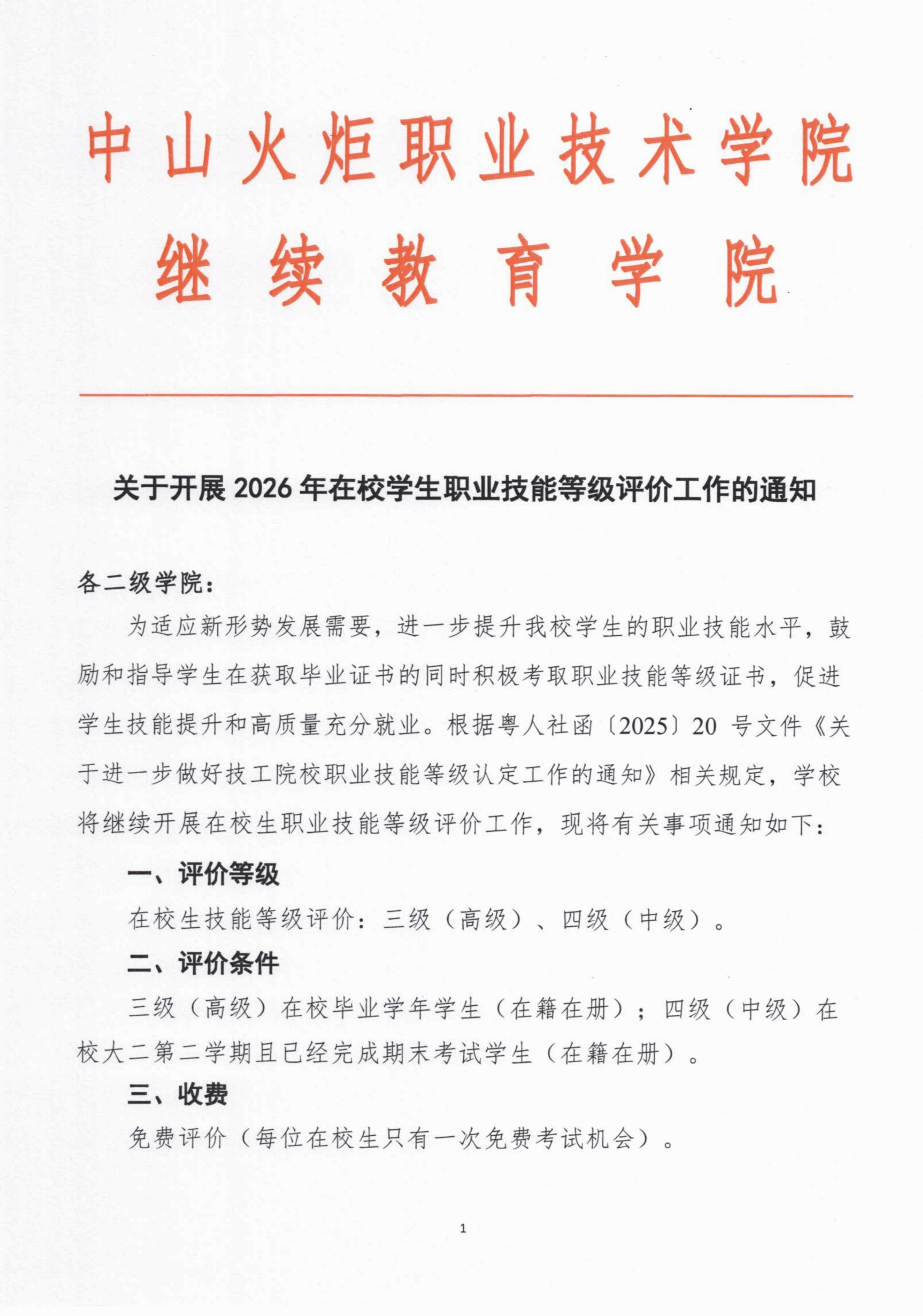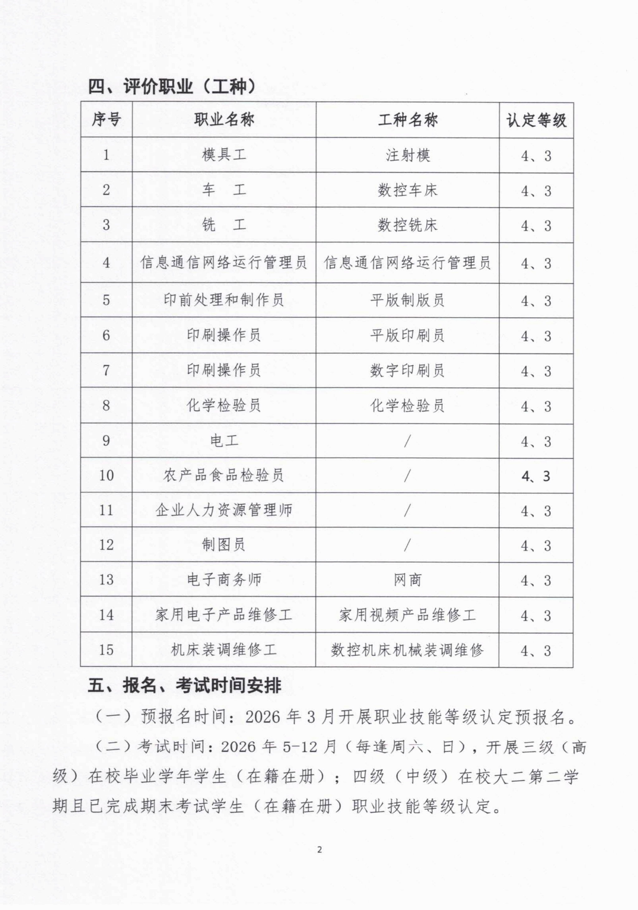关于开展2026年在校学生职业技能等级评价工作的通知