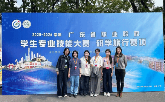 3月6日至7日,2025-2026学年广东省职业院校技能大赛(高职组)研学旅行赛项在广州职业技术大学圆满落幕。在我院刘红梅、高玉洁两位老师指导下,会展专业张洁玲、黄芷晴、黄惠馨、郑慧丹四名同学凭借扎实的专业功底和出色的赛场表现,荣获省赛三等奖,为学院赢得荣誉。