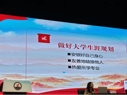杨书记从要坚定政治信仰、要树立职业理想、要践行社会责任三个方面详细阐述了大学生要坚定理想信念。青年的理想信念关乎国家未来,理想信念是我们人生的灯塔,为我们指引前行的方向。大学生作为新时代的主力军,肩负着实现中华民族伟大复兴的重任,树立正确的理想信念至关重要。在专业上,通过扎实学习专业知识、积极参加实践活动、参与行业竞赛等方式,提升自己的专业素养和综合能力,为未来的职业发展打下坚实基础。大学生不仅是知识的学习者,更是社会责任的担当者。同时,杨书记以往届毕业生的优秀事迹为例,生动讲述往届优秀师兄师姐的奋斗经历,激励同学们在实现中国梦的实践中放飞青春梦想。同时,杨书记从安顿好自己身心、友善地链接他人、热爱所学专业三个方面提醒同学们做好大学规划,希望同学们仰望星空脚踏实地,追梦而行!