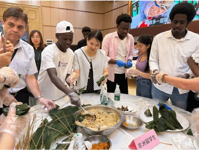 【外籍师生体验包粽子】