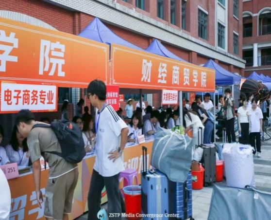 结合学院结合专业特色,在迎新现场设置了助农产品直播展示区。由电子商务专业师生共同搭建直播平台,镜头前摆满了来自周边乡村的优质农产品。直播过程中,学生们熟练讲解产品特点、带货技巧,不仅向新生和家长直观展示了专业实践成果,也为乡村振兴助力,成为迎新现场一道独特的“实践风景线”,不少新生驻足观看,主动参与互动,提前感受专业学习的魅力。