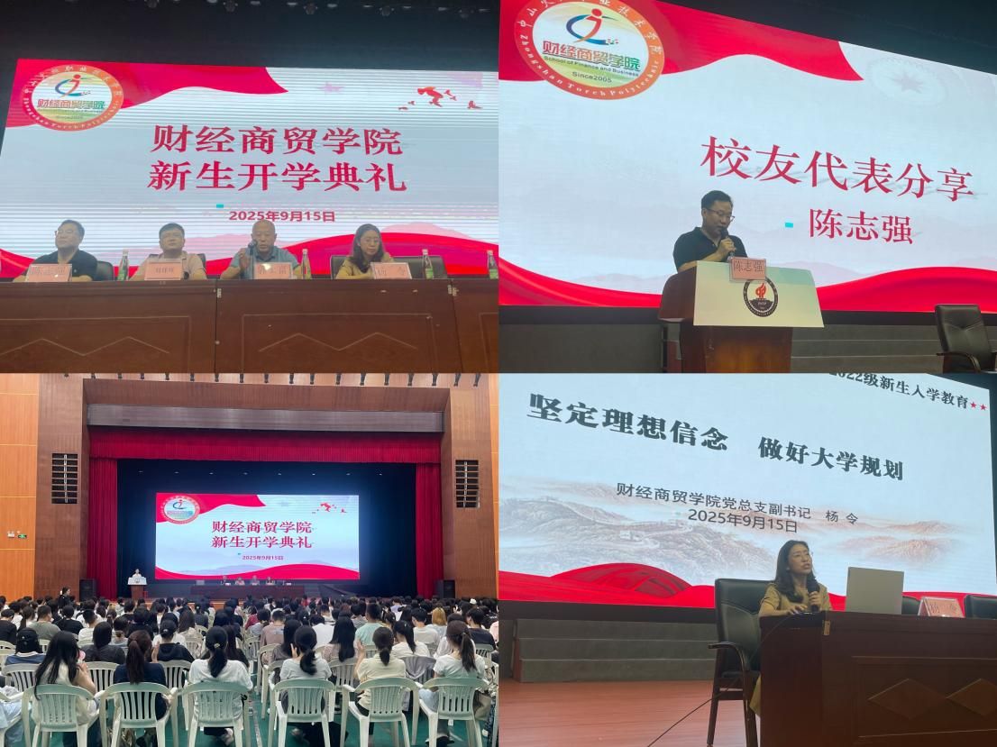 学院隆重举行 2025 级新生开学典礼,学院领导、优秀校友代表及全体新生共同参与,现场氛围庄重而热烈。典礼上,学院党总支书记、院长郭士富首先致辞,向新生们介绍了学校的发展历程、办学特色与育人成果,鼓励新生们以 “诚信、笃学、务实、创新” 的态度投入大学生活,在财经商贸领域找准方向、锤炼本领;党总支副书记杨令讲授思政第一课《坚定理想信念 做好大学规划》,深入分享校园生活及学习规划要诀,助力新生迅速融入集体。开学典礼的举行,不仅为新生正式开启大学生活赋予了仪式感,更让他们明确了成长目标,凝聚了逐梦力量。