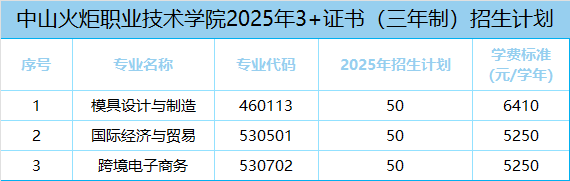 2025年春季高考3+证书招生计划